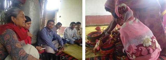 Mrs. Roopa Mehta, CEO of Sasha & Sujata Goswami, Executive Director of SSA visited Patna and Darbhanga, on invitation from the SRLM or Jeevika Bihar for an exploratory visit to the newly developed Mithila painting and Sikki grass clusters. This visit is aimed at identifying the possibilities of scaling up the clusters in future.
