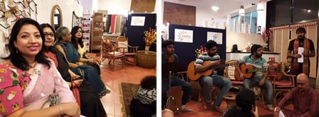 At Sasha, we teach you to live it up and rather beautifully at that, against all the odds that life tends to throw our way. Art is one medium that enables you to do just that. It brings out the rainbow after the showers in our life literally, just what a Kolkata July – at the peak of the rainy season here – ensures to drown our lives in. On Saturday, the 21st of July, we had a lovely, memorable and cosy evening of poetry and music as the Sasha Shop, which we plan on making a series.