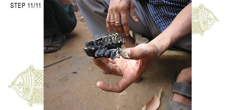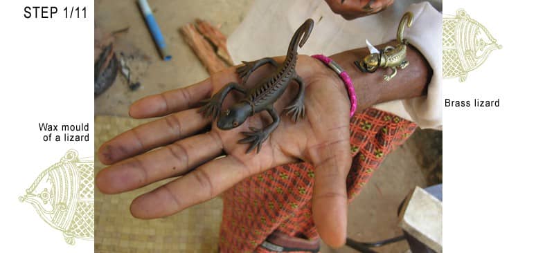 Dhokra products range from small beads to larger statues of mythical animals and Gods. From centimetres to 5 feet tall. Every piece is unique as the wax molds used in production can only be used once. Larger pieces are more risky to make since there is a lot of wastage involved and they are only made by a few master craftsmen.