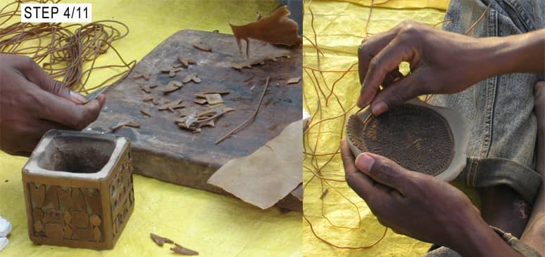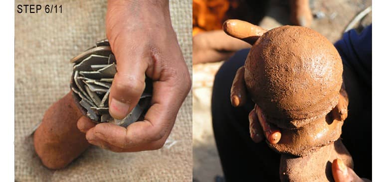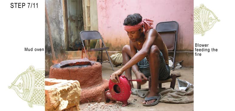 Originally, these craftsmen were nomads who went from tribe to tribe making their ceremonial and religious figures, ornaments and kitchenware. They were restricted to the materials of their immediate physical surroundings and the process of dhokra matched their nomadic rhythm. It did not require any fixed place or structure, or any heavy, large tools.
