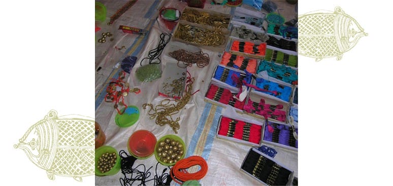 In Karmul, men work in groups to craft parts for the jewelry, like beads and pendants. Groups of women hand-fashion the pieces into beautiful works of wearable art. It is painstaking work that requires keen eyes and steady hands. That they use only the simplest of hand-operated mechanical tools, makes the jewelry even more impressive!
