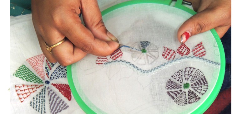 Kantha comprises of the simplest stitch in the language of embroidery – the running stitch. It is the way in which this stitch is used, in different arrangements, that forms the complex vocabulary of kantha.