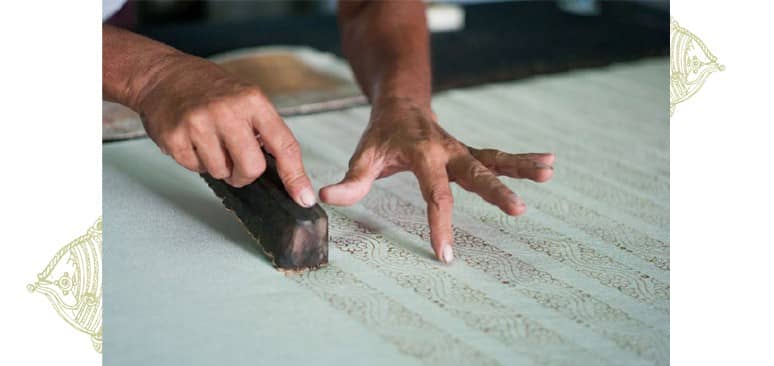 Block printing is an ancient craft in India, where wooden blocks are carved with intricate patterns and these are dipped in color and repeatedly pressed on fabric. There are numerous motifs, colors and fabrics, typical to each region in India. These motifs have evolved over time and have great cultural significance. The patterns also evolved because of influences from Europe and the Middle East who have been major buyers of these fabrics over centuries.