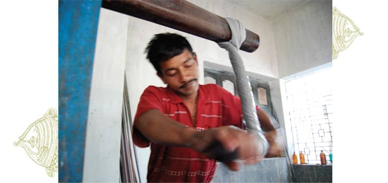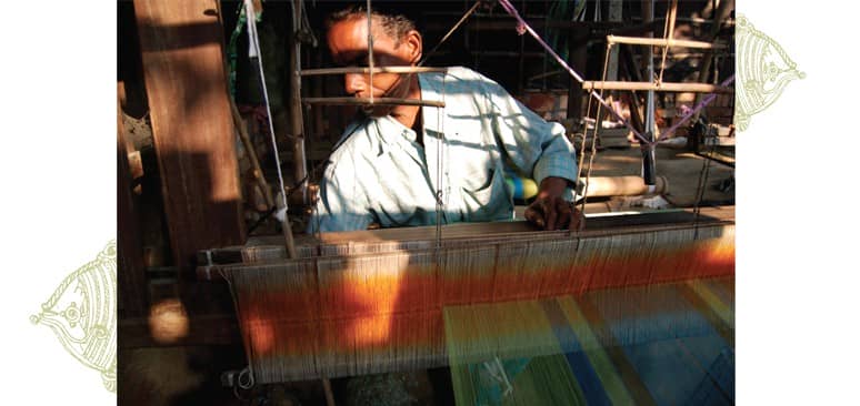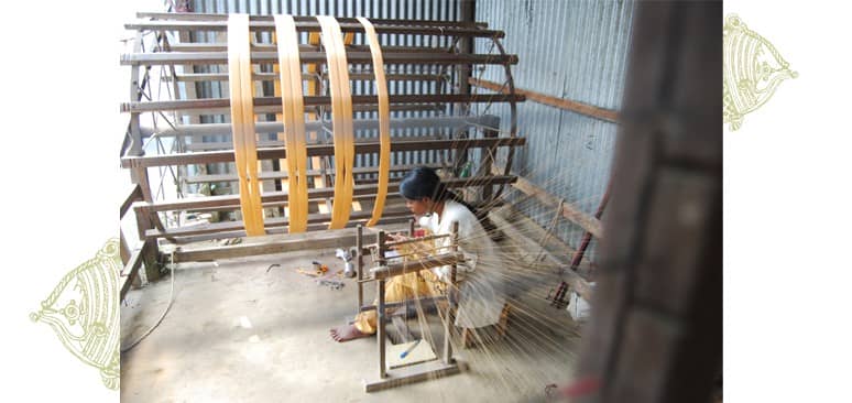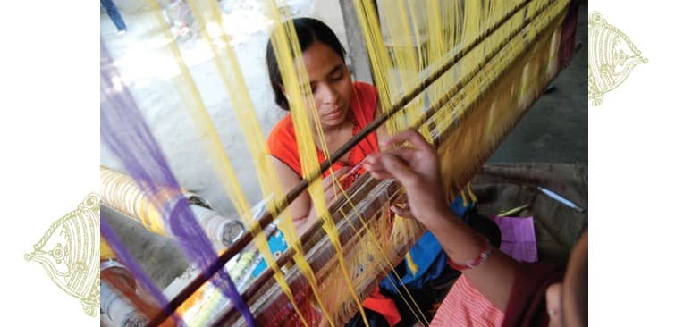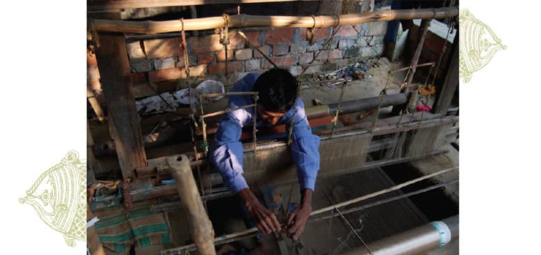 Weaving is one of the oldest crafts in the world and in each region myriad techniques and fabrics have evolved. In West Bengal, woven fabrics are famous for their very fine count, soft texture and intricate jacquard or Jamdani patterns. The colors are gentle, in keeping with the lush landscapes and seemingly of infinite tones. Saris, stoles and gamchas or towels are the main products woven here.