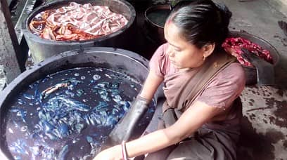 Dyeing of yarn and fabric in AZO free dyes, sometimes plain and sometimes using tie and dye techniques