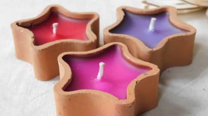 Aromatic candles made in a variety of colors, shapes and fragrances with terracotta and glass containers