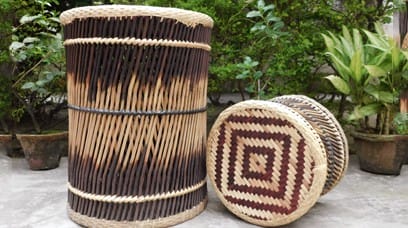 Basketry is a rural craft intimately connected with everyday life. Bamboo, cane and grasses are woven into baskets, furniture, trays, floor mats, bags and fruit baskets.