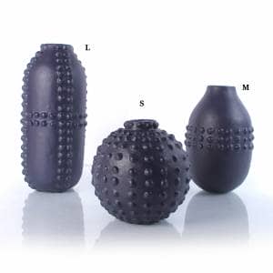 Kaayur (Himalayan Blue Pine in Kashmiri) – is a set of three decorative vases hand painted in Navy Blue embellished with rows of small bubbles. They are made of paper pulp in concentric circles around the centre of circumference or all over. These vases spell simplicity and elegance.Ideal as decorative showpieces or flower vases for dry artificial flowers only.