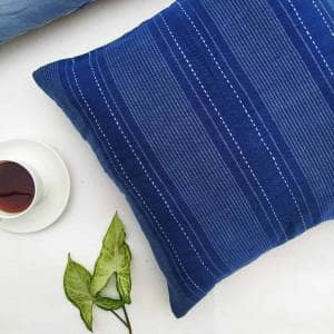 The Indigo Cushion Cover is a beautiful fusion of hand woven fabric and Kantha embroidery. Both the hand crafted techniques with their aesthetic richness reflects a new creative spirit and look