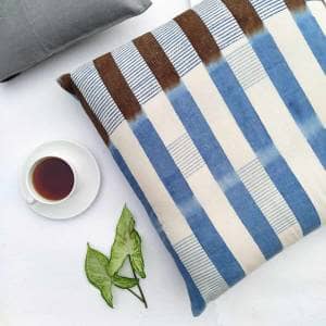 This unique hand block print blended with free hand printing technique with Indigo and brown stripes creates a distinctive look for all homes.