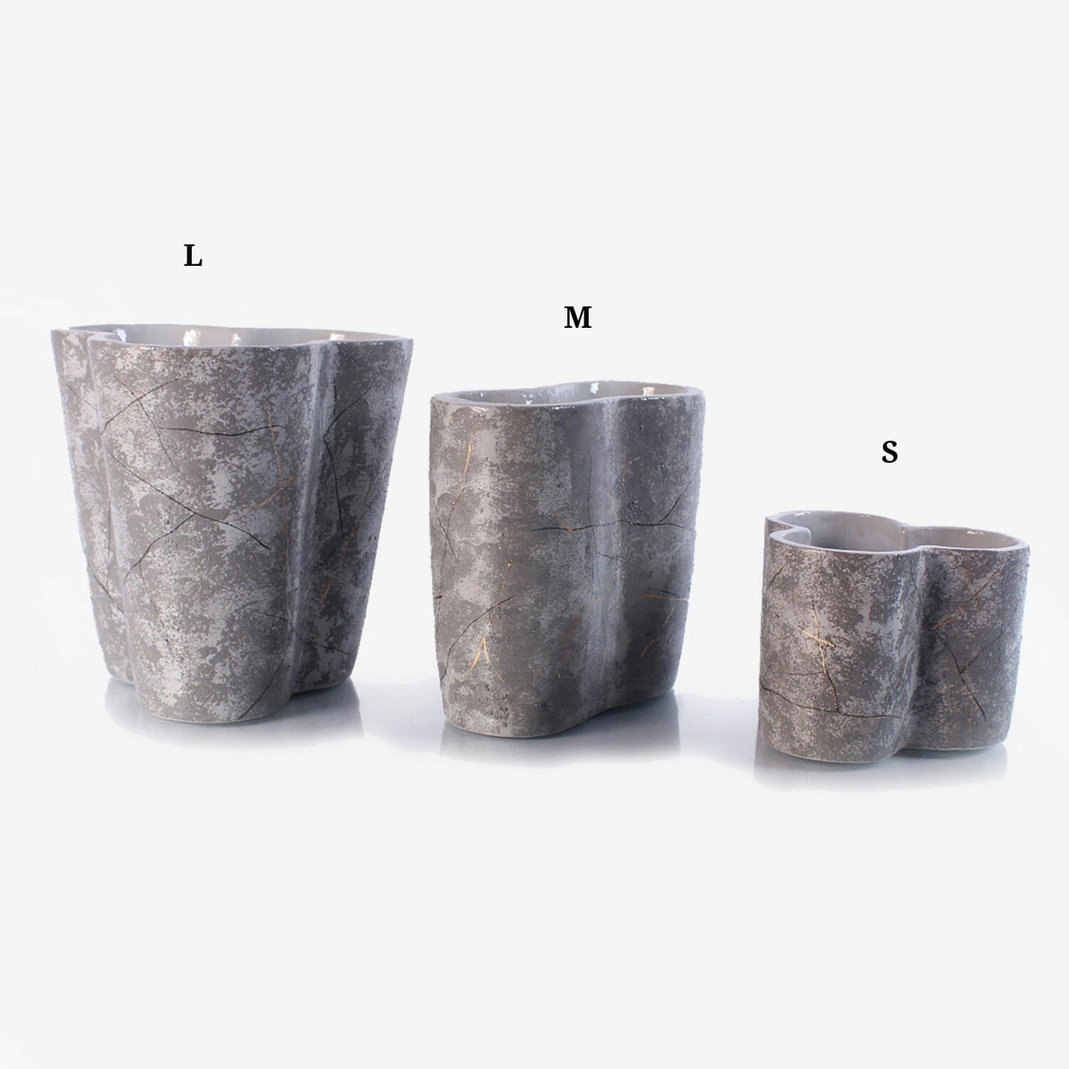 Shatooth (Mulberry in Kashmiri) – is a set of three bowls inspired by Wall Art with abstract surface painting in Grey and Gold. Vintage, elegant and minimalistic, to fit into any kind of decor- home, office or gardens.