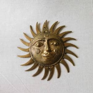 Decorate your walls with this brass dhokra sun mask wall hanging.