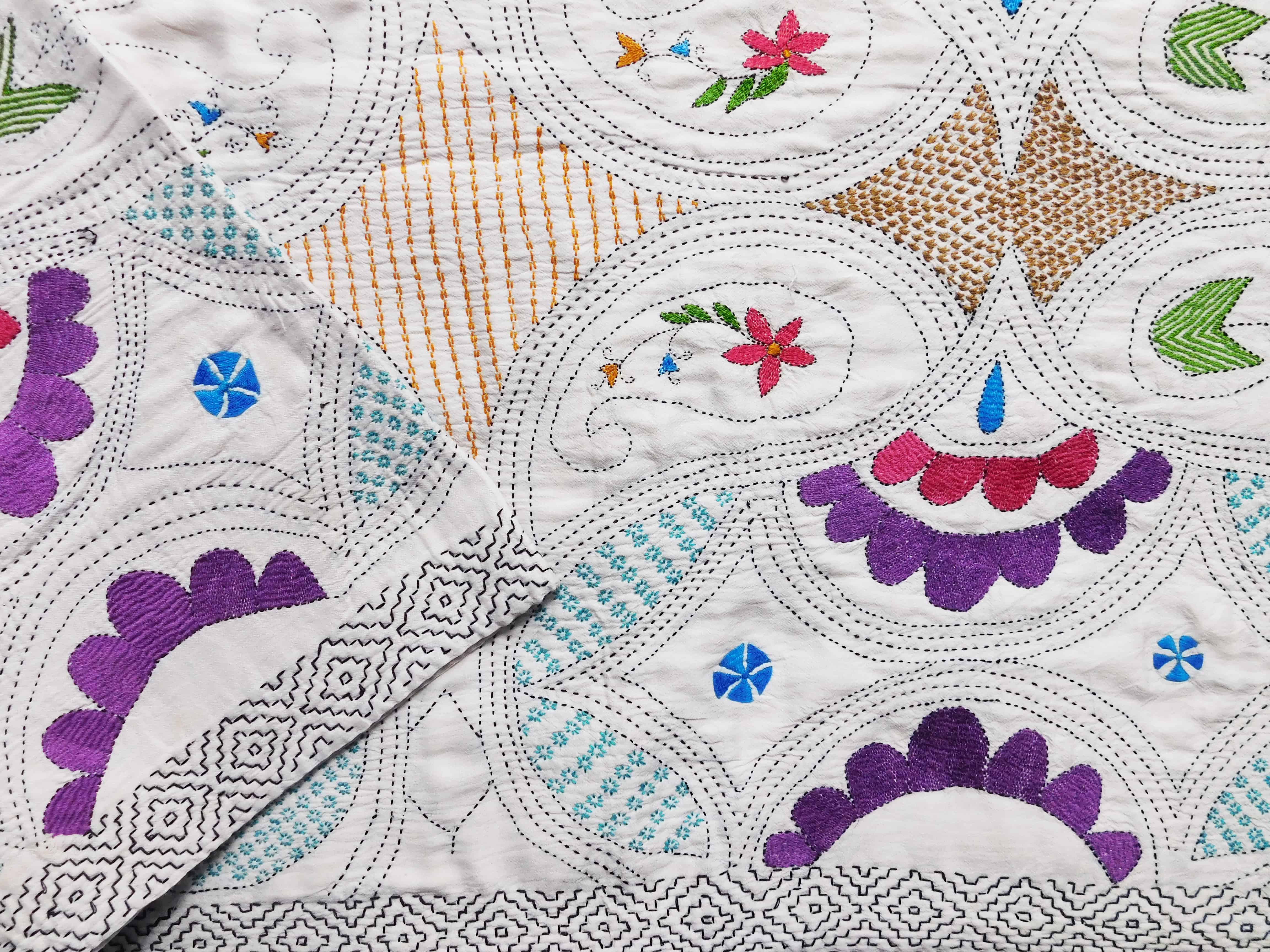 Beautify your bedroom space with this intricately embroidered kantha bed cover.