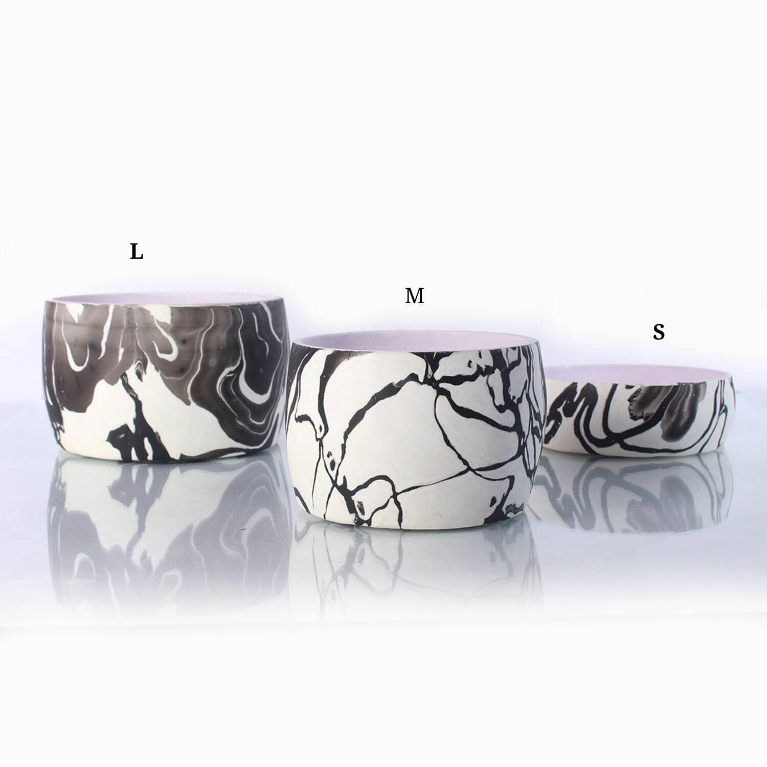 Yemberzal (Narcissis Flower in Kashmiri) – is a set of three bowls inspired by the Marbling technique of aqueous surface design art in Black and White combination. The glossy finished look gives them a sophisticated and elegant feel. Ideal as gifts, elegant tableware to hold dried tit bits or on the dresser for small jewellery.