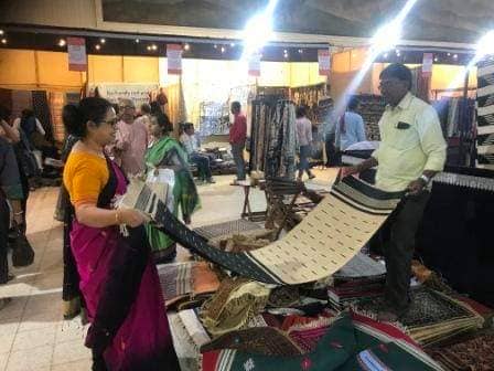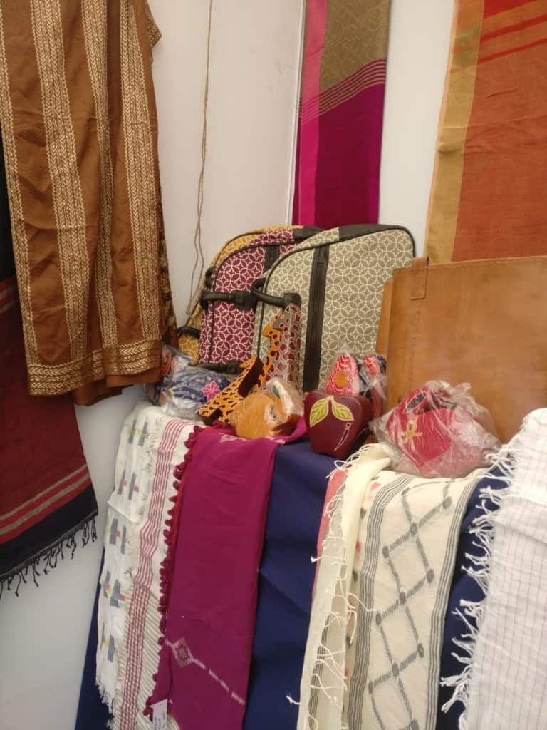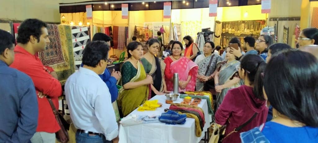 Additionally, handicrafts and handloom products from all over the country were displayed Kenjakura weaves, Sabai and Shola Banglanatak.com, Baskets from ESAF, Batik from Shunya, Bagru and Blue Pottery from Rajasthan, Gujarat, Bhimji Vankar from Kutch, Bamboo & textiles from Assam and North-east; Patteda Anchu from Karnataka, Blue Lotus and Mahalaxmi Ikkat from Telengana, Shibori, Kalamkari Dhurries, Quilts from Purkal Stree Shakti, Dhokra & tribal weaves from Anwesha; Basketry from KadamHat, Afghan jewelry & Carpets; Terracota by Craftlipi, Aharam weaves, Jamdani, Phulia cottons and Handspun sarees from Bengal, kitchen ware, wood & horn products, hand-woven stoles & sarees, Organic food, herbal body care, organic gourmet spices and much more.