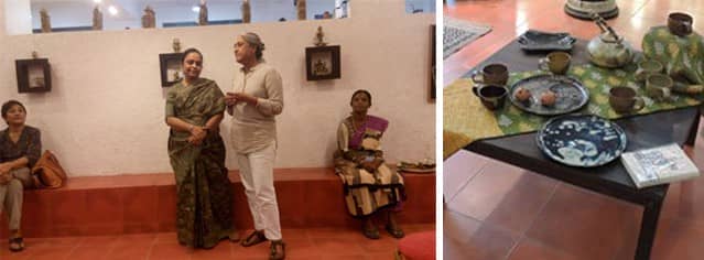 The evening started with the inauguration of the exhibition which displayed potteries of Lipi Biswas through varied and astounding products display followed by an Interaction session. She was in conversation with our Sasha CEO Mrs Roopa Mehta and went down the memory lane, related to her work, her experiences, her life as a studio artist and her love for her art which is so natured inspired and raw. She even mines her own clay, makes her own paints and glazes all from the natural products available in the surroundings!