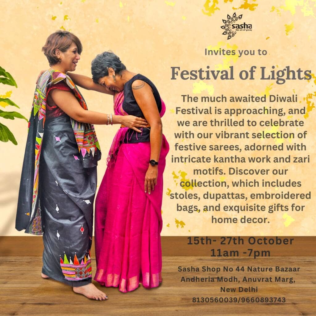 The much awaited Diwali Festival is approaching, and we are thrilled to celebrate with our vibrant selection of festive sarees, adorned with intricate kantha work and zari motifs.